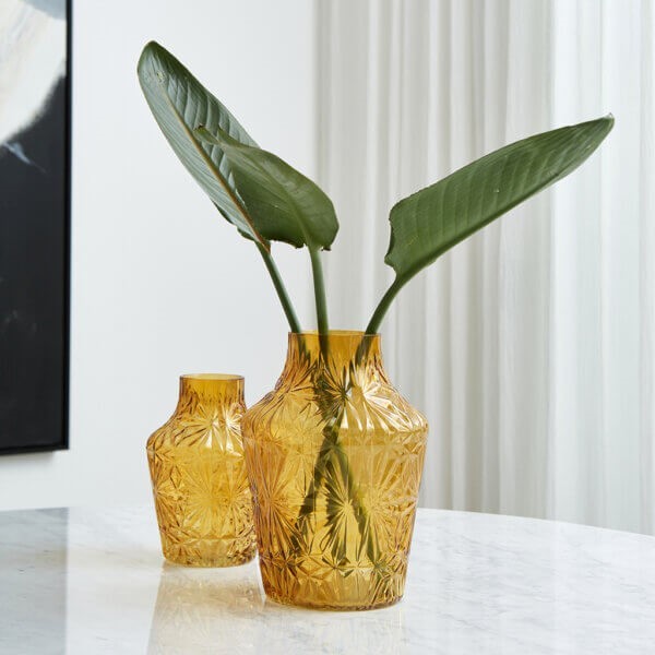 JARRÓN PARADISE L Vidrio Importado, color Ambar 29cm de alto