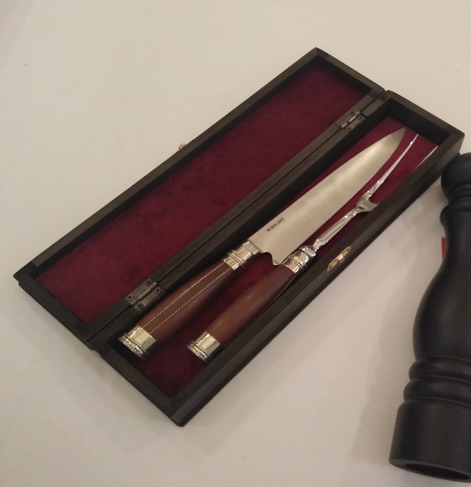 JUEGO DE CUBIERTOS TRINCHAR ALPACA Y MADERA X2